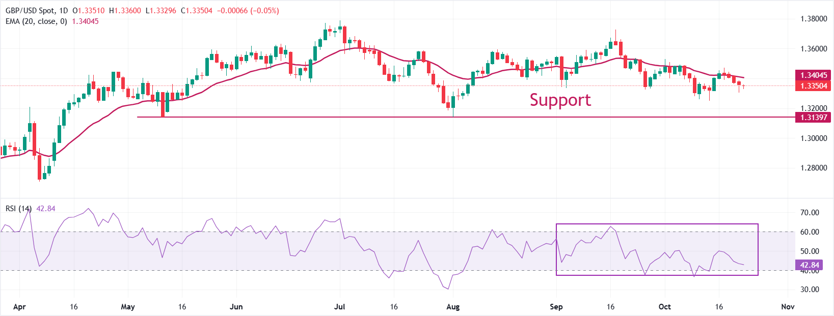 The Pound Sterling trades inside Wednesday's trading range around 1.3350 against the US Dollar at the time of writing. The near-term trend of the GBP/USD pair remains uncertain as it trades below the 20-day Exponential Moving Average (EMA), which is around 1.3404.