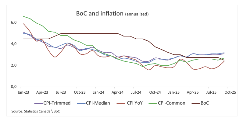 For markets, Monday's headline CPI number will be the first thing they latch onto. But inside the BoC, the spotlight will be on the details, especially the Trimmed, Median, and Common core measures. The first two remain stuck above 3%, a level that continues to worry policymakers, while the Common measure has drifted higher as well, still comfortably above the bank's target.
