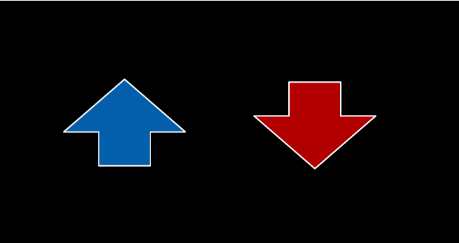 Draw a blue upward arrow or a red downward arrow to indicate a buy/sell sign.