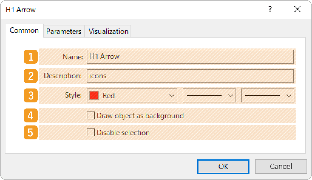 On the "Properties" window, edit the parameters in the "Common", "Parameters", and "Visualization" tabs and click "OK".