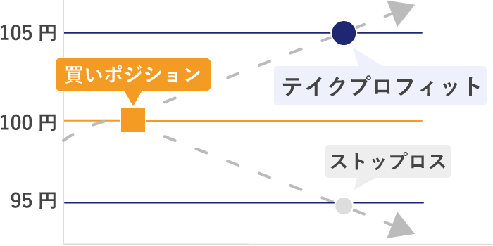例えば、1ドル=100円のときにドル円の買いポジションを持った後、105円で決済して利益を得るのが利益確定です。