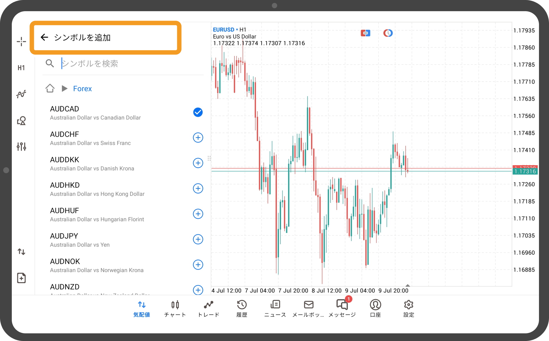 iOSやAndroidのスマートフォンやタブレット端末にてMetaTrader4(MT4)/MetaTrader5(MT5)アプリの気配値画面に閲覧したい銘柄を追加する方法を説明します。PC版 MT4/MT5の場合、全銘柄を一括表示させることが可能ですが、スマートフォンやタブレット版 MT4/MT5の場合、閲覧したい銘柄を指定して追加する必要があります。