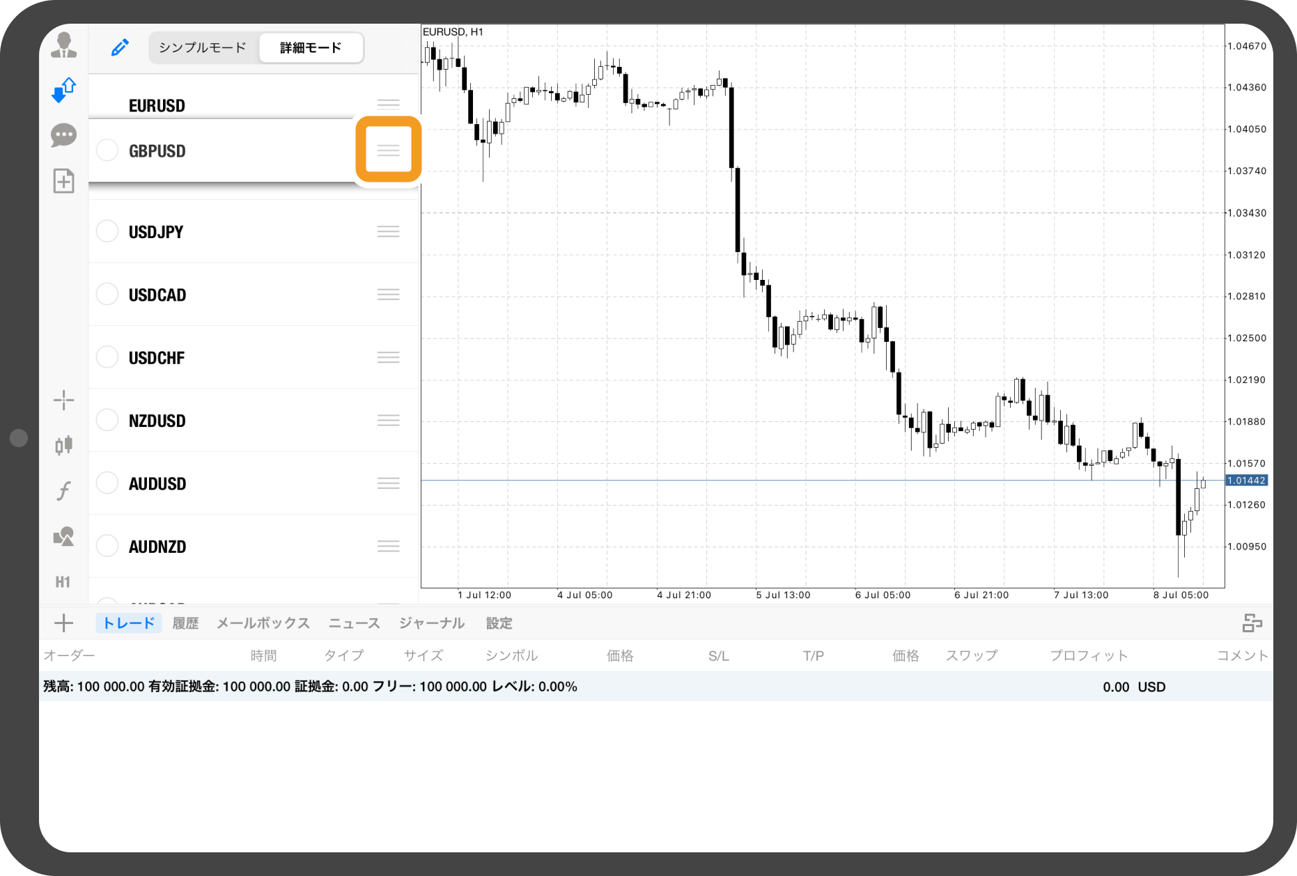 iOSやAndroidのスマートフォンやタブレット端末にてMetaTrader4(MT4)/MetaTrader5(MT5)アプリの気配値画面に表示している銘柄の並び替えを行う方法を説明します。気配値画面には、表示したい銘柄を追加することや、非表示にしたい銘柄を非表示にすることも可能です。
