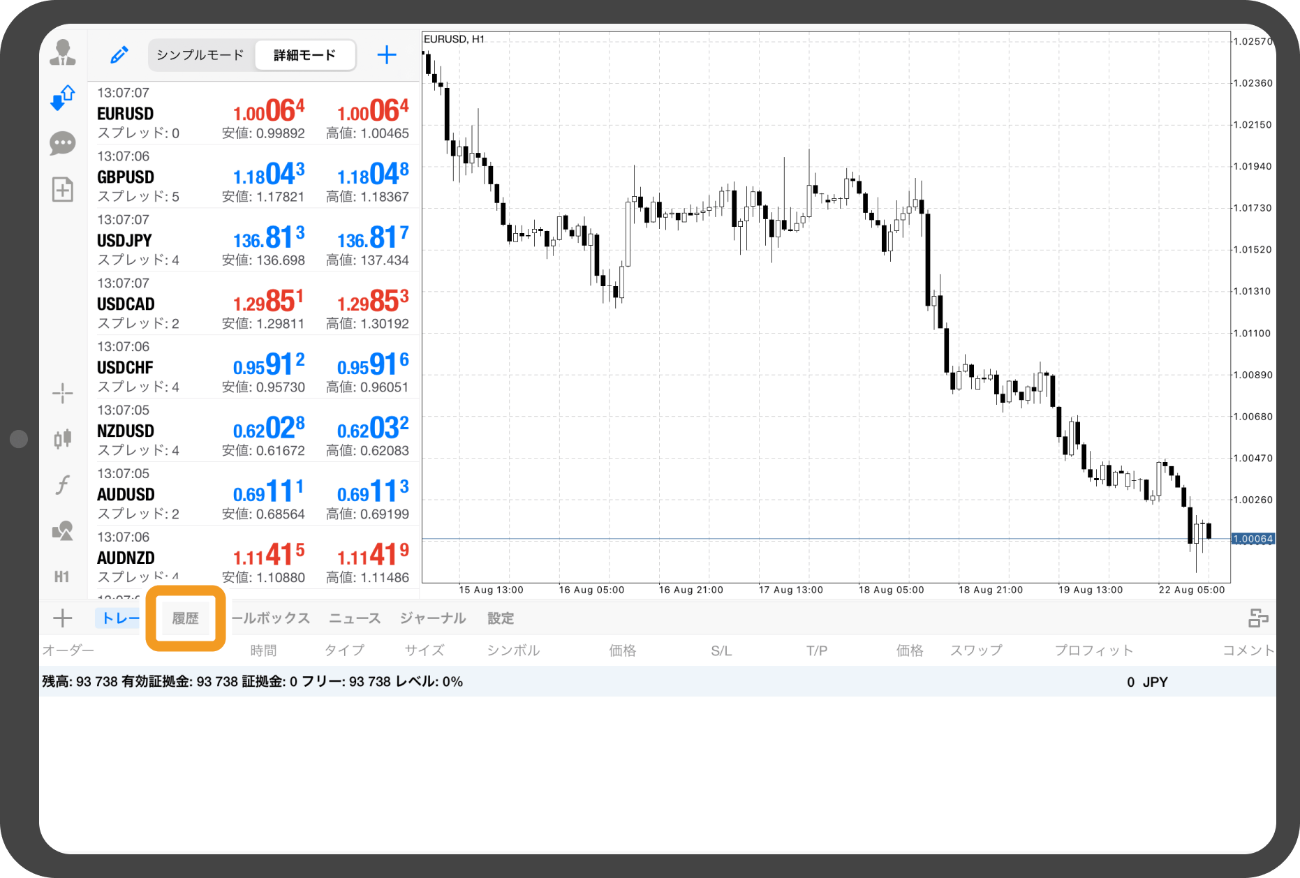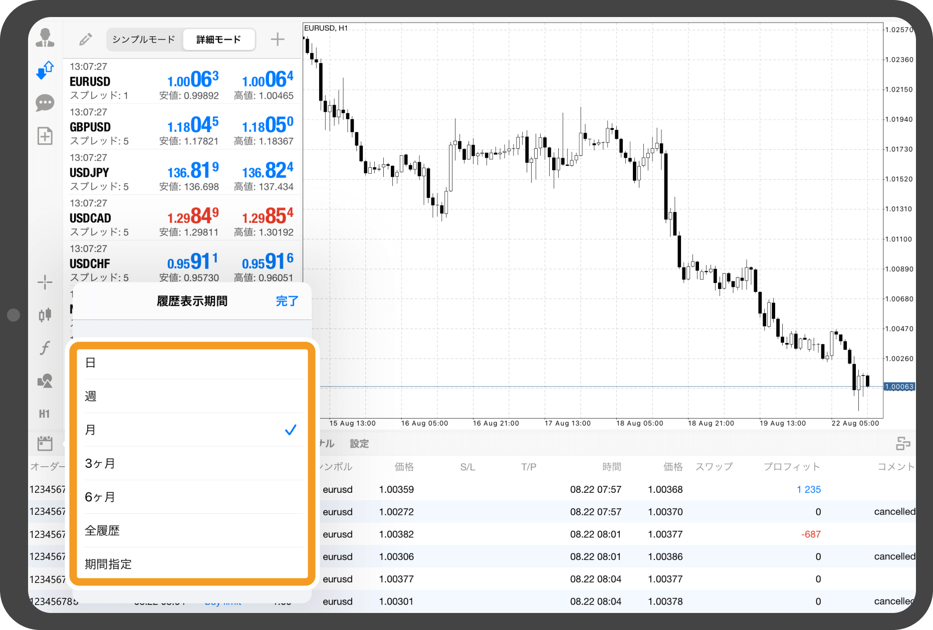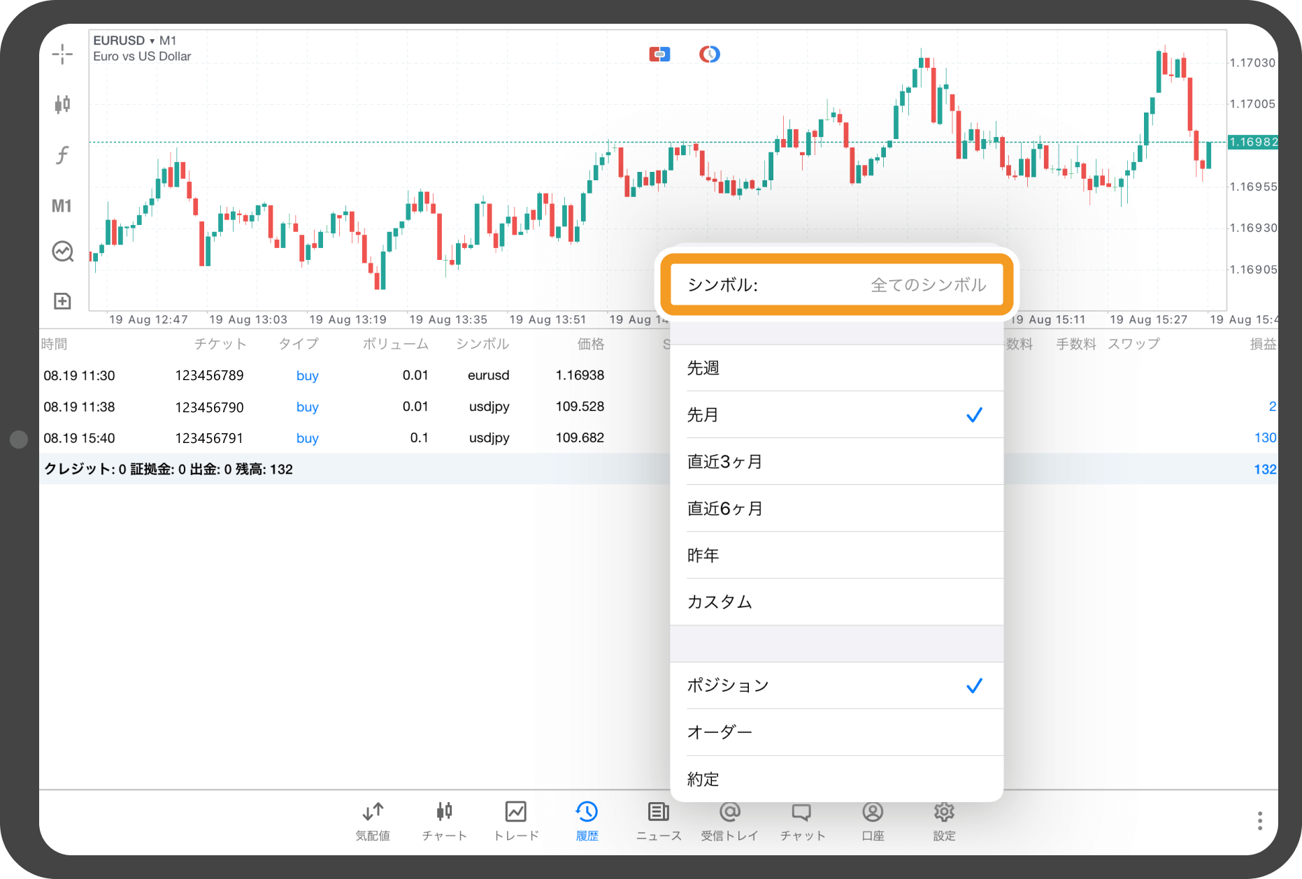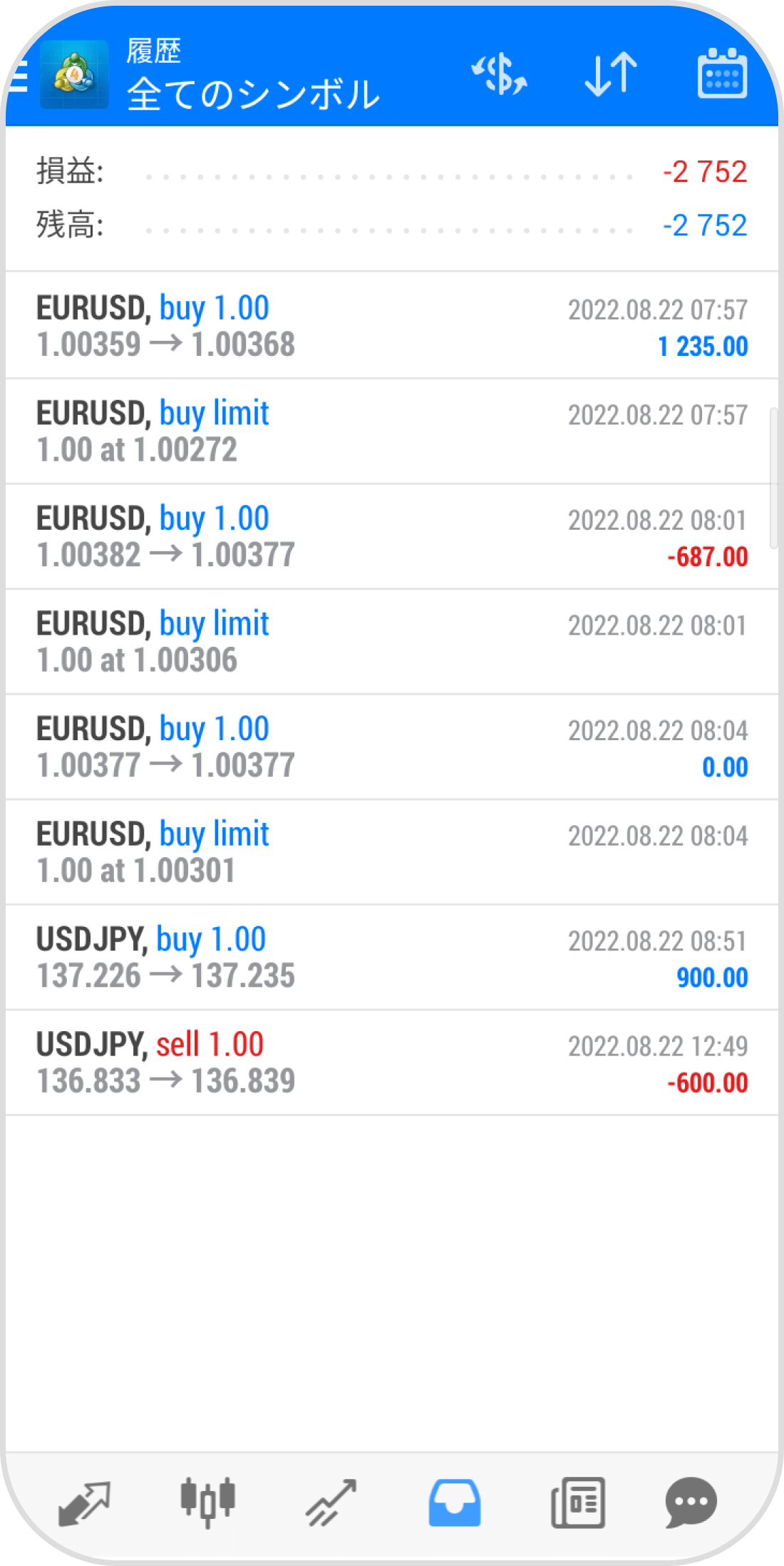 iOSやAndroidのスマートフォンや、タブレット端末対応のMetaTrader4(MT4)/MetaTrader5(MT5)アプリで、取引履歴を表示する方法について説明します。取引履歴は、履歴画面から確認することができます。デフォルトではiOS版 MT5の場合、直近6カ月分の取引履歴が、その他のiOSやAndroidのMT4/MT5の場合は、当日の取引履歴のみ表示されています。