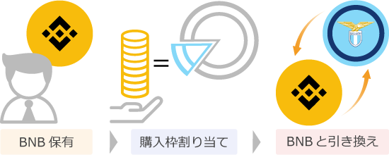 バイナンスローンチパッドに参加するには、BNB(ビルドアンドビルド)を保有する必要があります。BNBの保有量に応じて購入できる枠が割り当てられ、その枠の範囲内で実際にBNBと引き替えて購入することができます。