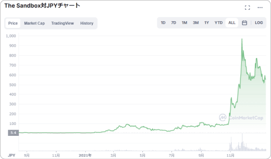 SANDも2021年に数円だった価格が1,000円近くに暴騰しました。
