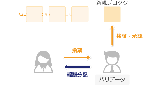 ステーキングとはブロックを検証・生成する仕組みで、バリデータの力を借りて行われます。バリデータは報酬と引き換えにステーキングをしており、個人など小規模なユーザーはETHをバリデータに委託することで、報酬を得ることができます。