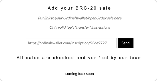 BRC-20ウォレットをマーケットプレイスに接続して、BRC-20トークンを売買できます。同じ要領で、ビットコインNFTも売買できます。