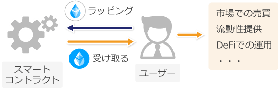 ラップドトークンとは、特定の仮想通貨の価値に連動するトークンを指します。例えば、ビットコインはビットコインブロックチェーン上で流通し、イーサリアムブロックチェーン上で使用できません。そこで、ビットコインと値動きが同じになるトークンを作って、イーサリアムブロックチェーン上で流通させます。これがラップドビットコインです。