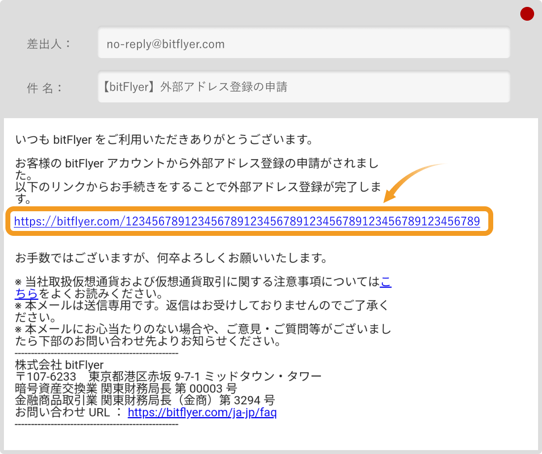 ビットフライヤーからのメールが届いたら、文中のURLをクリックします。
